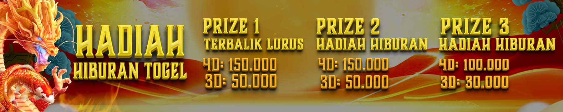 - Hadiah prize 2 : 4D = Rp. 150.000,- / 3D = Rp. 50.000,-